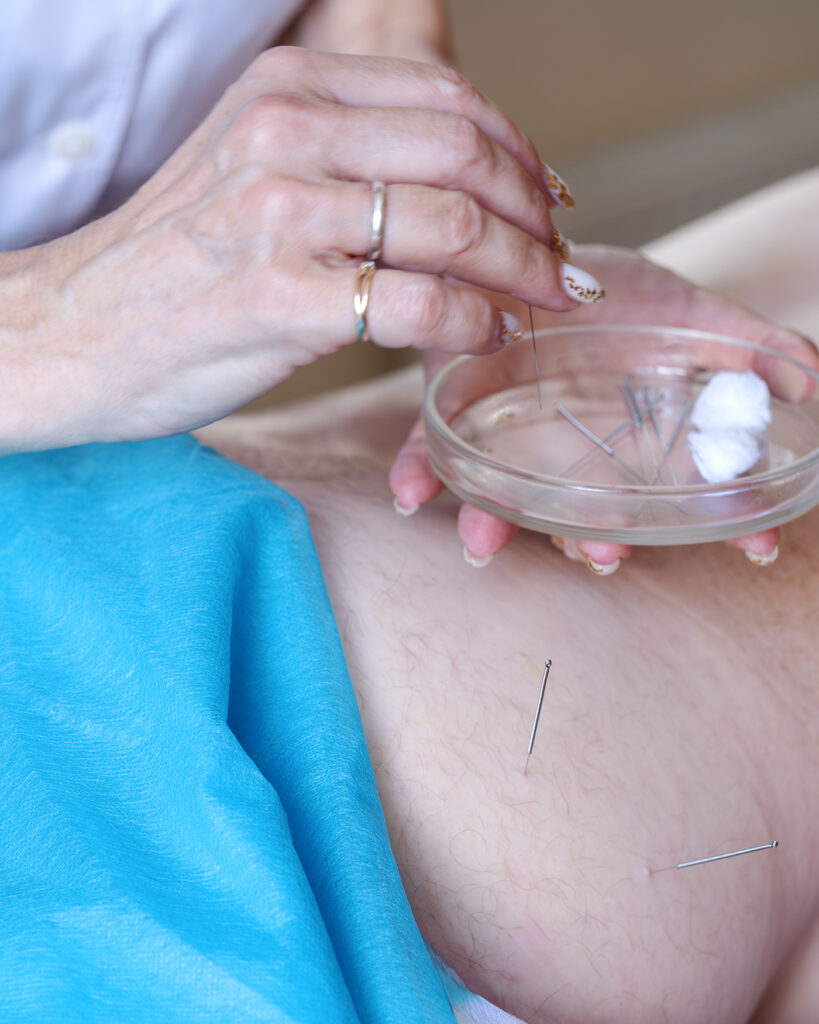 Найважливіший розділ китайської медицини, дорогоцінний спадок китайського народу. Китайські медики вже протягом століть борються з хворобами за допомогою методу акупунктури, заснованого на знанні будови людського тіла, розташування локальних нервових центрів. Для процедури використовуються лише одноразові голки. Велике значення мають техніка введення голки, її напрямок та глибина проникнення, час перебування у точці.